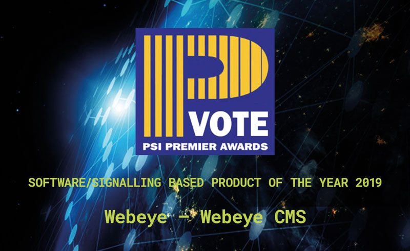 If you would like to see Webeye win a prestigious PSI Premier Award please click the link and vote for us with a tick for Webeye - Webeye CMS in the Software/Signalling Product of 2019. Thank You